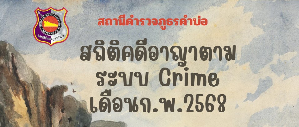 ดาวน์โหลดข้อมูลสถิติคดีอาญา เดือน ก.พ.68 ในรูปแบบไฟล์ EXCEL คลิ๊กดูที่นี่ ดาวน์โหลดข้อมูลสถิติคดีอา