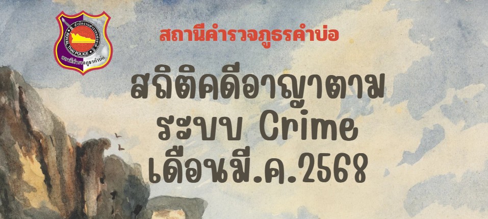 ดาวน์โหลดข้อมูลสถิติคดีอาญา เดือน มี.ค.68 ในรูปแบบไฟล์ EXCEL คลิ๊กดูที่นี่ ดาวน์โหลดข้อมูลสถิติคดีอ