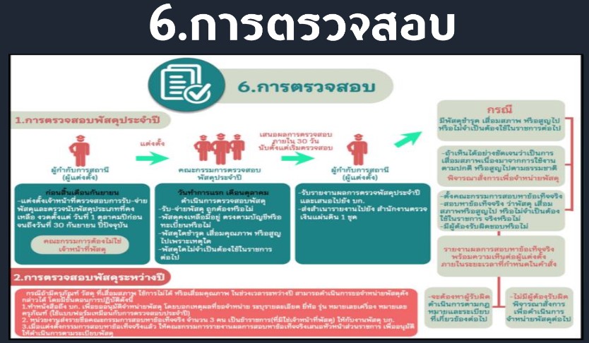 กำหนดแนวทางควบคุม กำกับดูแลรักษา ตรวจนับ ตรวจสอบสภาพการใช้งานทรัพย์สินของราชการ ของบริจาคโดยเฉพาะทรัพย์ประเภทที่มีความเสี่ยงในการนำไปใช้โดยมิชอบ
