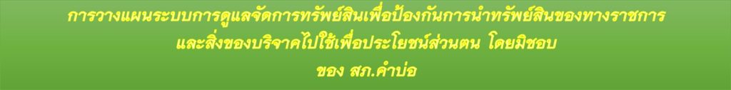 แสดงการวางระบบการดูแลจัดการทรัพย์สินเพื่อป้องกันการนำทรัพย์สินของทางราชการและของบริจาคไปใช้เพื่อประโยชน์ส่วนตน โดยมิชอบ
